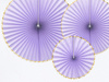 Rozety dekoracyjne Yummy w kolorze jasnoliliowym ze złotymi brzegami, średnice ok.: 40 cm, 32 cm i 23 cm.(1 karton / 50 op.)(1 op. / 3 szt.)