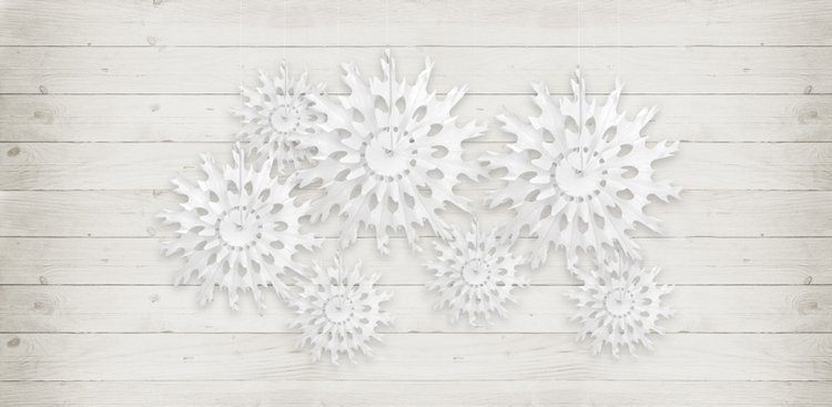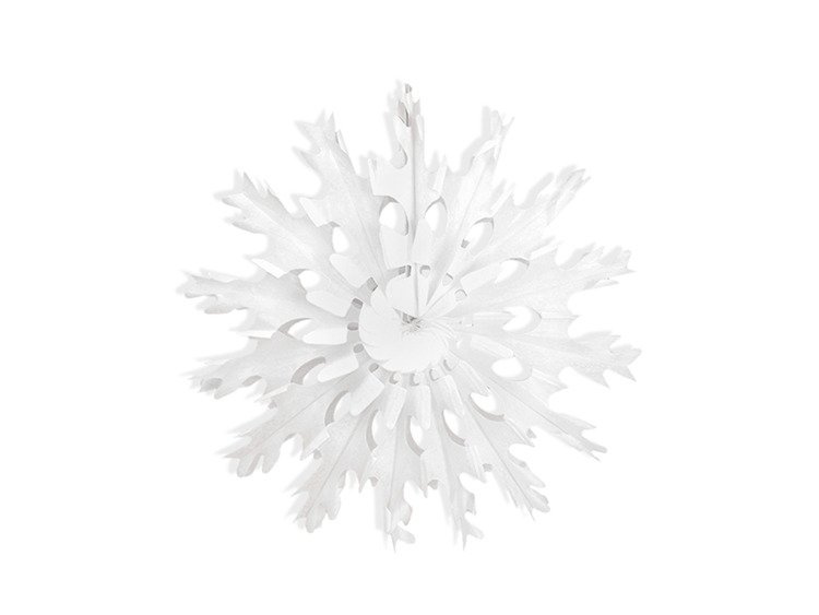 Rozeta bibułowa Śnieżynka w kolorze białym, średnica 37 centymetrów.(1 karton / 48 szt.)