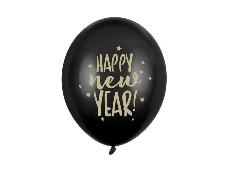 BALONY CZARNE HAPPY NEW YEAR 6 SZT 30 CM