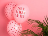 Balony Strong Love makes me fly w kolorze Pastel Baby Pink z czerwonym dwustronnym nadrukiem.