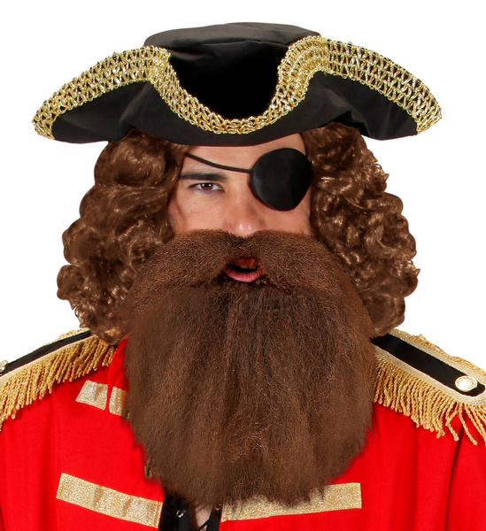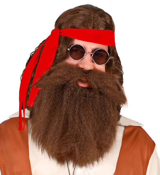 Broda z wąsami w kolorze brązowym. Mocowana na elastycznej gumce. Wygląda naturalnie.