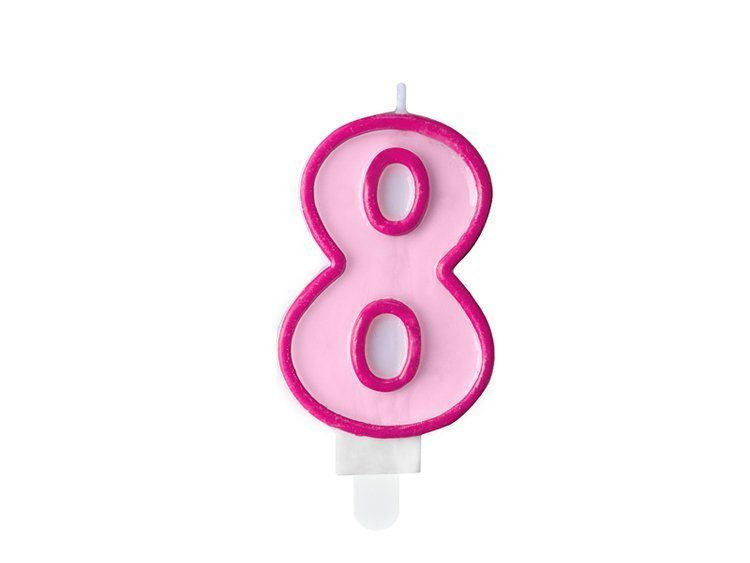 ŚWIECZKA CYFRA 8 RÓŻOWA, 7 cm