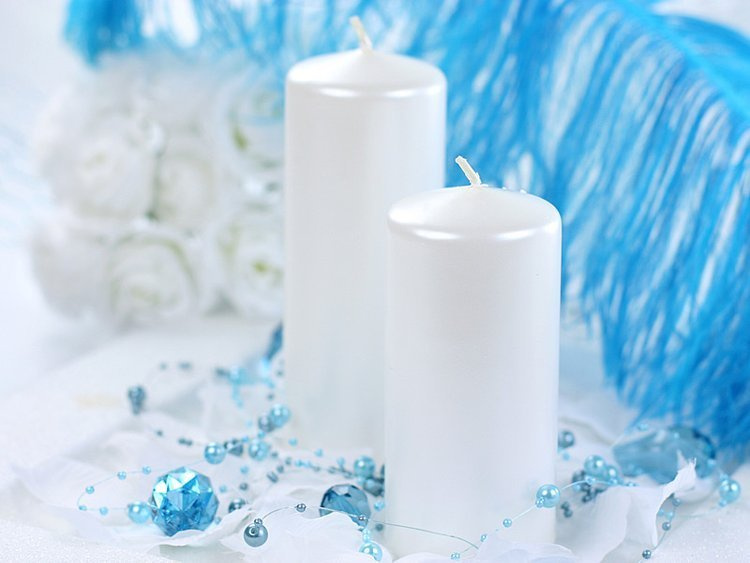 Świeca klubowa metalizowana w kolorze perłowym.