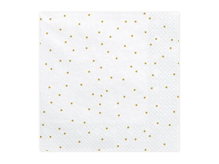 Serwetki trójwarstwowe Kropeczki w kolorze białym ze złotym nadrukiem.