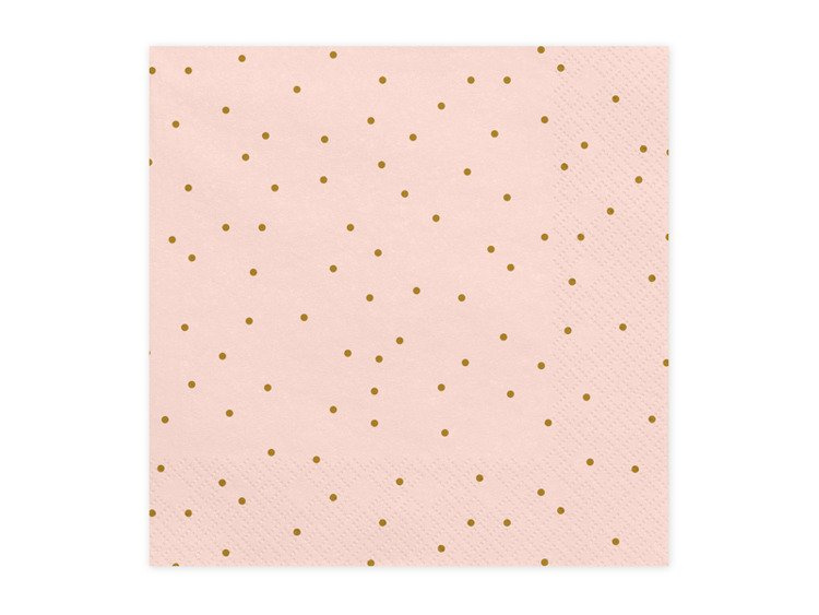 Serwetki trójwarstwowe Kropeczki w kolorze jasnoróżowym ze złotym nadrukiem.