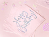 Serwetki papierowe w kolorze jasnego pudrowego różu z holograficznym napisem Happy Birthday, wymiary po rozłożeniu ok. 33 x 33 cm, wymiary po złożeniu ok. 16,5 x 16,5 cm. (1 karton / 12 op.)(1 op. / 20 szt.)