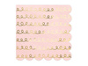 Serwetki papierowe w kolorze jasnego pudrowego różu ze złotym metalizowanym wzorem szlaczków, wymiary po rozłożeniu ok. 32 x 32 cm, wymiary po złożeniu ok. 16 x 16 cm.(1 op. / 20 szt.)