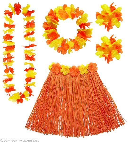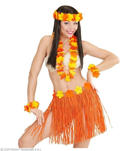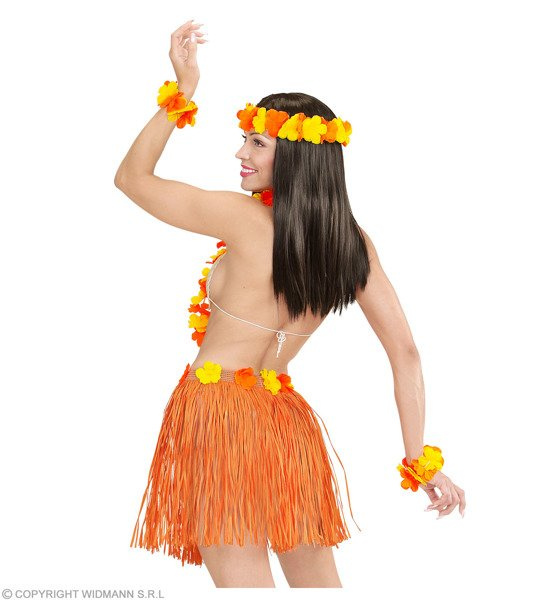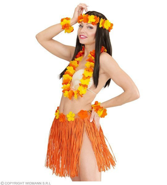 - hawajska spódniczka wykonana z materiału imitującego rafię,