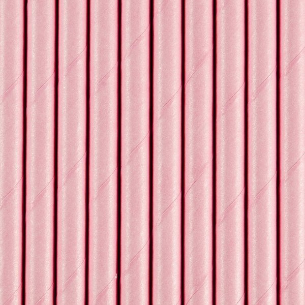 Słomki papierowe w kolorze jasnoróżowym, długość około 19,5 centymetra.(1 karton / 50 op.)(1 op. / 10 szt.)