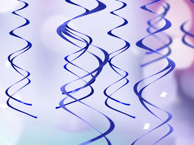 Dekoracje wiszące Świderki w kolorze niebieskim, długość około 60 centymetrów.(1 karton / 50 op.)(1 op. / 5 szt.)