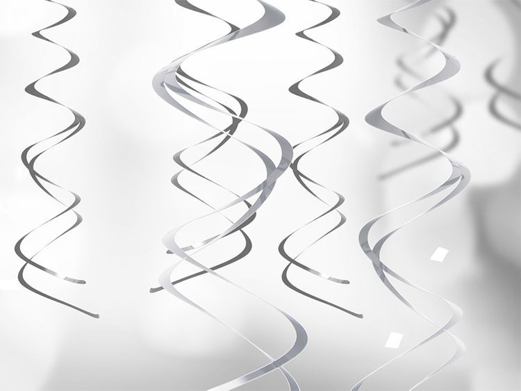 Dekoracje wiszące Świderki w kolorze srebrnym, długość około 60 centymetrów.(1 karton / 50 op.)(1 op. / 5 szt.)
