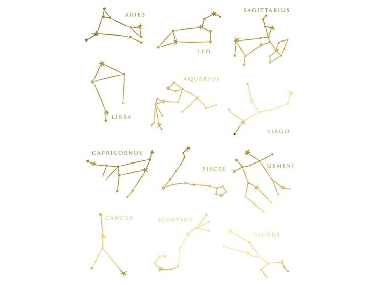 Tatuaże zmywalne Znaki zodiaku w kolorze złotym metalizowanym.