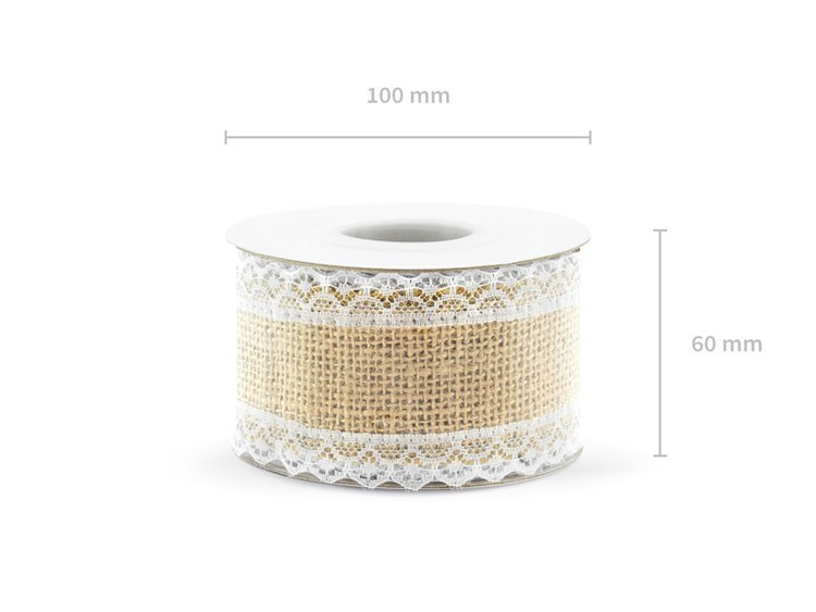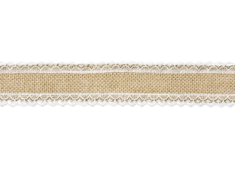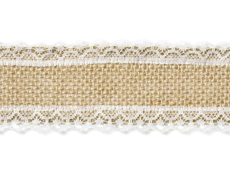 Taśma jutowa z białą koronką.