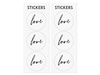 Torebki na słodycze wykonane z papieru kraft, z 6 białymi naklejkami z napisem Love wymiary po złożeniu ok. 8x18x6 cm.(1 karton / 50 op.)(1 op. / 6 szt.)