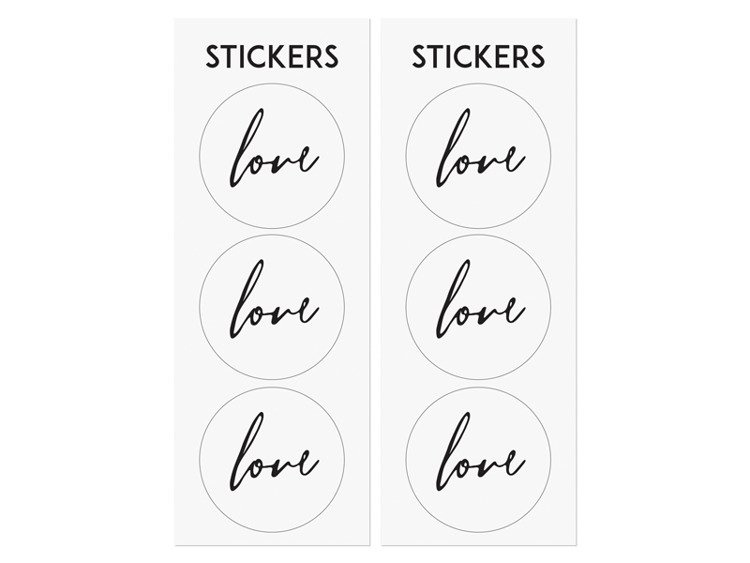 Torebki na słodycze wykonane z papieru kraft, z 6 białymi naklejkami z napisem Love wymiary po złożeniu ok. 8x18x6 cm.(1 karton / 50 op.)(1 op. / 6 szt.)