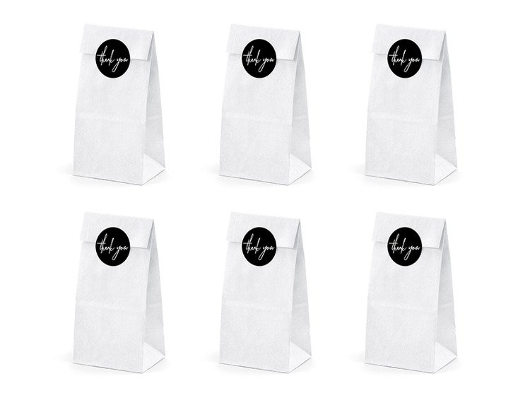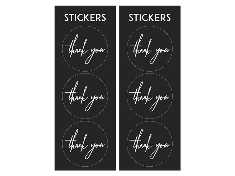 - 6 sztuk czarnych naklejek z napisem Thank you.