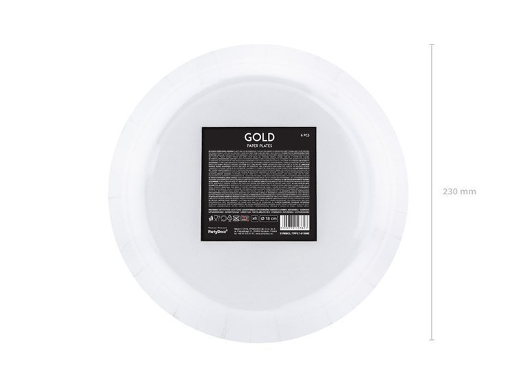 Talerzyki papierowe okrągłe w kolorze złotym metalizowanym.