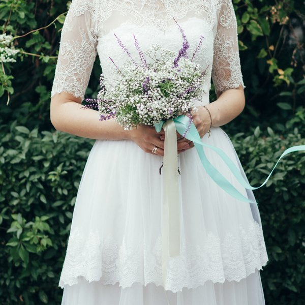 Satynowa tasiemka w kolorze jasnokremowym.
