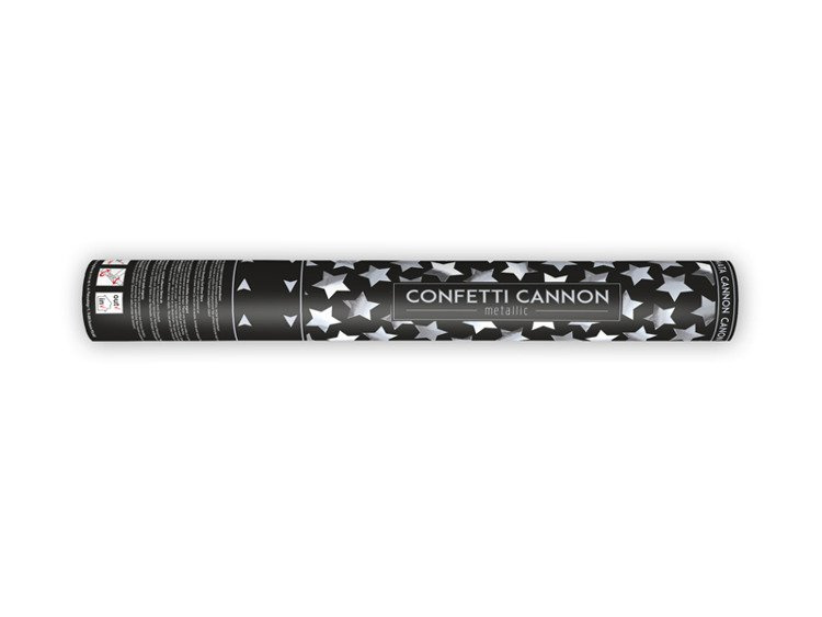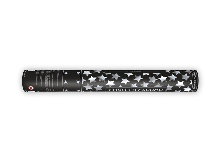 Tuba strzelająca metalicznymi gwiazdkami w kolorze srebrnym, długość 40 centymetrów.(1 karton / 72 szt.)