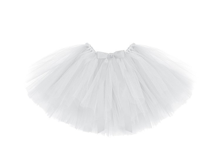 Spódnica Tutu w kolorze białym z białą tasiemką, obwód w pasie około 60 centymetrów, długość około 30 centymetrów.(1 karton / 10 szt.)