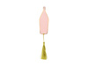Kolor różowy ze złotym nadrukiem i złotymi frędzlami.