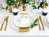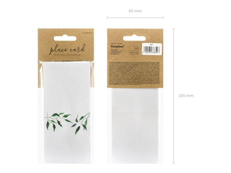 Wizytówki na stół wykonane z papieru w kolorze białym, ze wzorem liści, wymiary po złożeniu ok. 7 x 7,5 cm.(1 karton / 50 op.)(1 op. / 25 szt.)