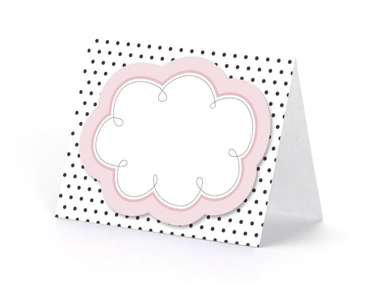 Wizytówki na stół Sweets, z chmurką do samodzielnego przyklejenia, mix wzorów, wymiary 8,4 x 6,8 centymetrów.(1 karton / 40 op.)(1 op. / 6 szt.)