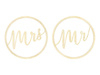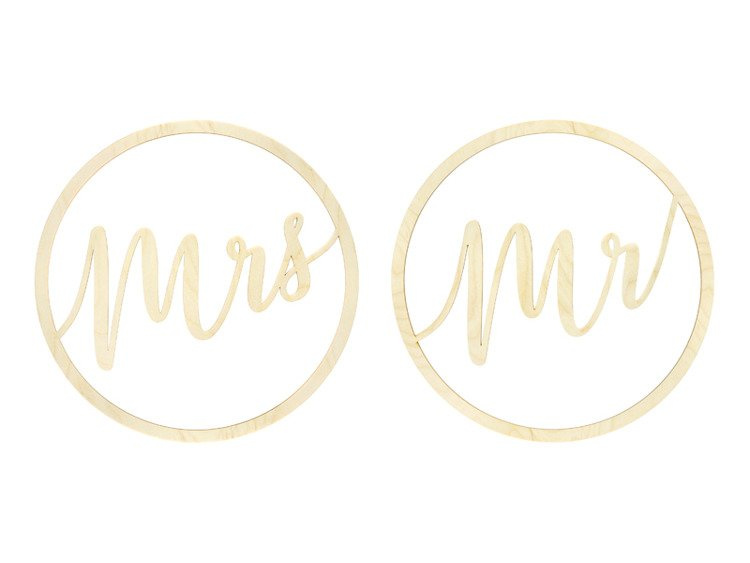 Zawieszki dekoracyjne wykonane z drewna, zestaw zawiera zawieszkę z napisem Mr oraz zawieszkę z napisem Mrs, średnica ok. 38 cm.(1 karton / 10 op.)(1 op. / 2 szt.)