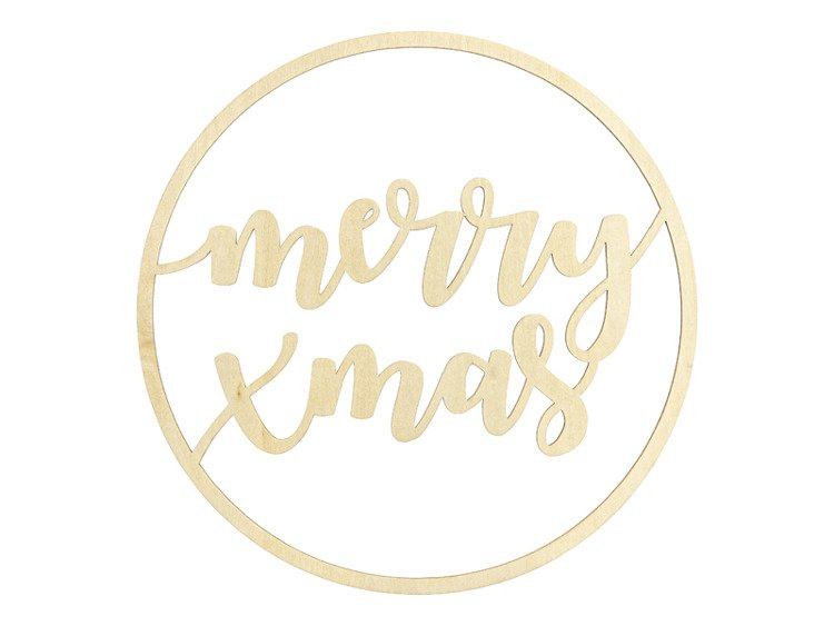 Zawieszka dekoracyjna wykonana z drewna z napisem Merry Xmas, średnica ok. 28 cm.(1 karton / 20 szt.)
