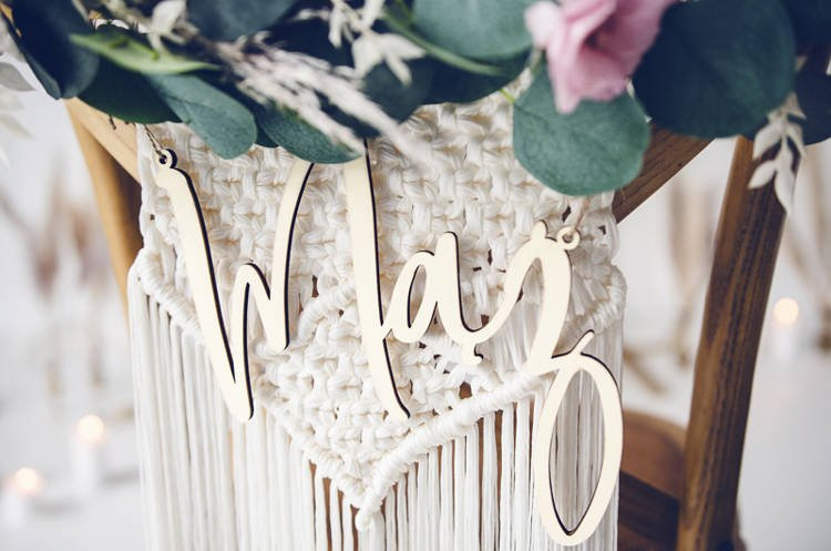Drewniane zawieszki na krzesła Żona i Mąż, wymiary ok. 21.5 x 12 cm (Żona) i ok. 19.5 x 20 cm (Mąż).(1 karton / 12 op.)(1 op. / 2 szt.)