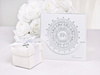 Zaproszenia komunijne w kolorze białym ze srebrnym ornamentem, w zestawie z kopertami.(1 karton / 50 op.)(1 op. / 10 szt.)