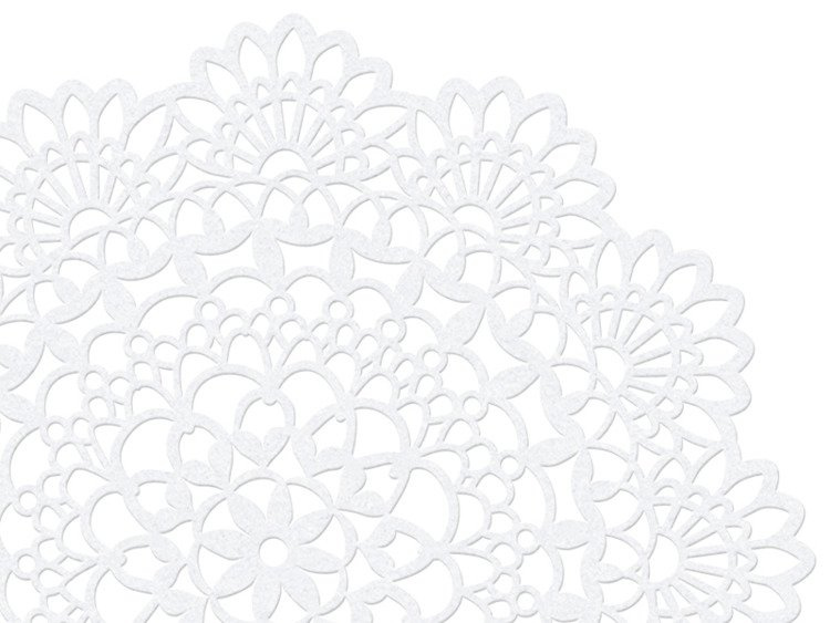 Dekoracje papierowe Rozeta, wycinane z białego, grubego papieru, średnica 5 centymetrów.(1 karton / 50 op.)(1 op. / 10 szt.)