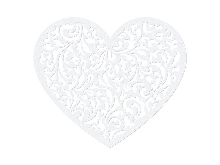 Dekoracje papierowe Serce, wycinane z białego, grubego papieru, wymiary 12x10 centymetrów.(1 karton / 50 op.)(1 op. / 10 szt.)