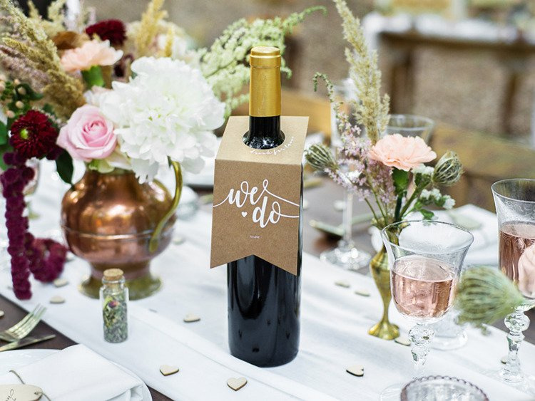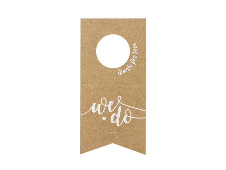 Zawieszki na butelki wykonane z papieru w kolorze kraft z białym nadrukiem We do.