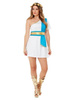 ze złotym zdobieniem przy dekolcie oraz doszytym niebieskim materiałem na