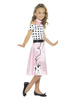 Sukienka w kolorze różowo-białym, posiada nadruk pieska.