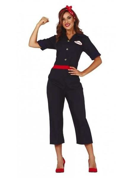 Kombinezon granatowy z rękawkami, z przodu wszyte guziki, zapinany z tyłu na zamek.