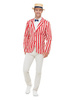 Marynarka w czerwono-beżowe pasy.