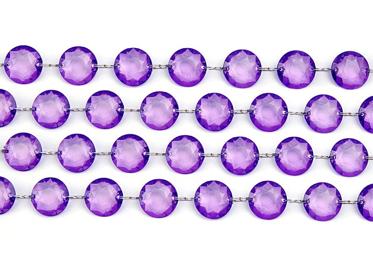 Girlanda kryształowa w kolorze fioletowym, długość 1 metr. Średnica kryształowego kółka 18 milimetrów.(1 karton / 30 szt.)