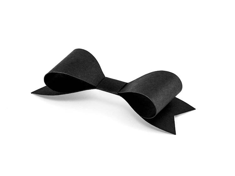 Dekoracje papierowe Kokardki w kolorze czarnym, do samodzielnego złożenia, zestaw zawiera 6 kokardek (wymiary po złożeniu ok. 8 x 2,6 cm) i 6 kawałków taśmy(1 karton / 50 op.)(1 op. / 6 szt.)
