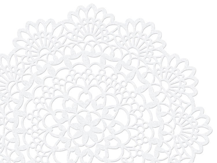 Dekoracje papierowe Rozeta, wycinane z białego, grubego papieru, średnica 4 centymetry.(1 karton / 50 op.)(1 op. / 10 szt.)