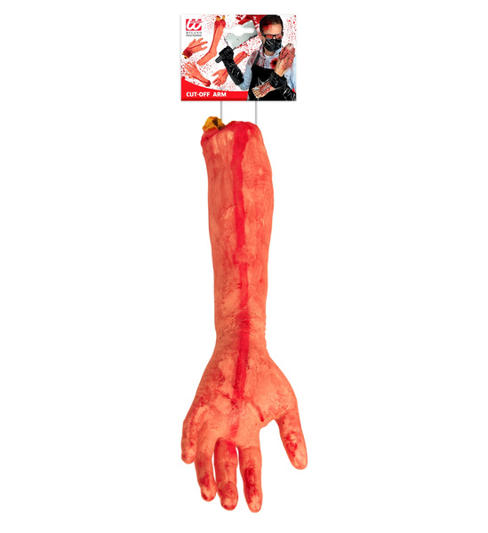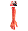 Ręka naturalnych wielkości, w realistycznych kolorach. Środek wypełniony watoliną, dzięki czemu nie traci swojego kształtu. Dodatkowo oblana farba imitującą krew.