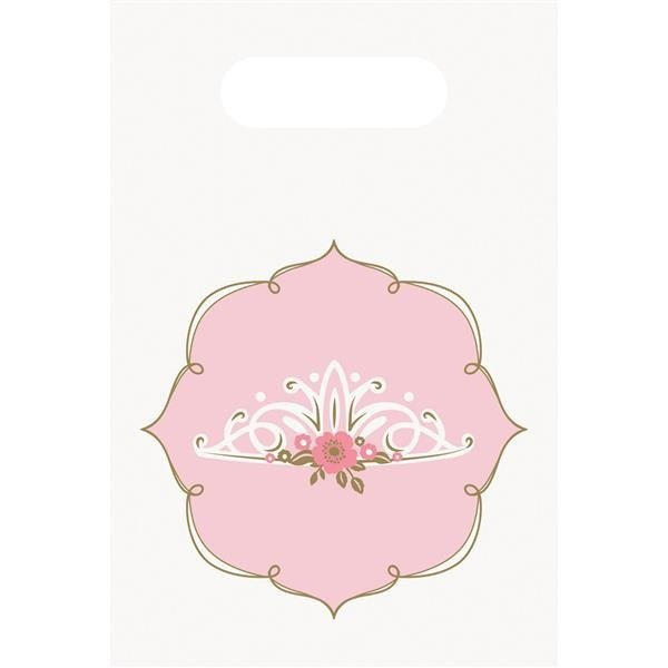 Zestaw 8 torebek papierowych białych z nadrukiem tiary.
