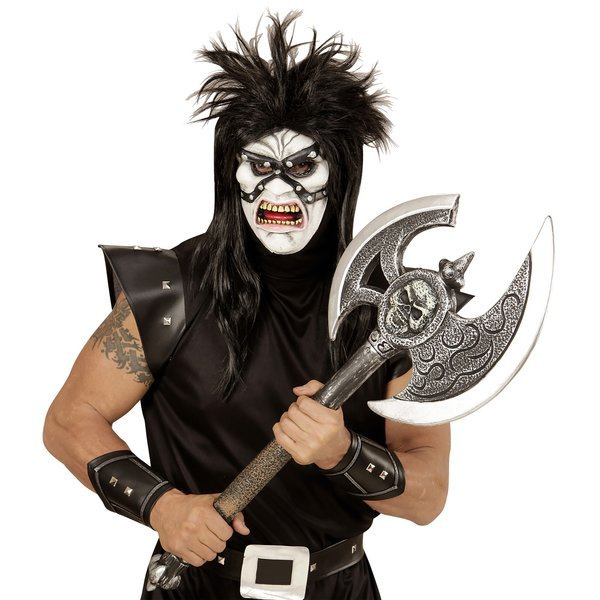 • Maska kata z żółtymi zębami i wzorem imitującym śruby.