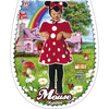Strój w kolorze czerwonym w białe grochy. Opaska z uszami i kokardką.