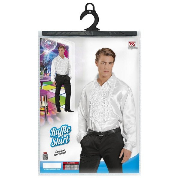 Biała koszula wykonana z materiału charakteryzującego się satynowym połyskiem.