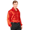 • Koszula w kolorze czerwonym, wykonana z materiału o satynowym połysku.