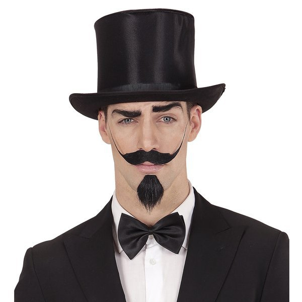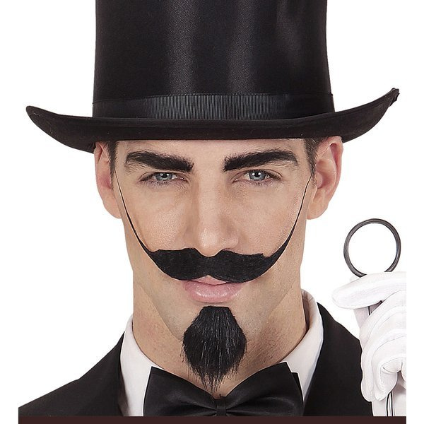 Wąsy długie, skierowane ku górze, czarne, mocowane na przylepiec.