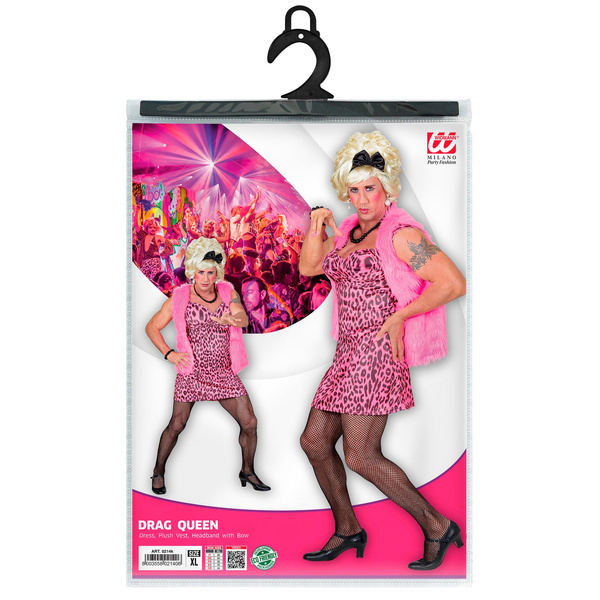Strój Drag Queen lata 80 te, karnawał, halloween, kolor różowo-czarny, w zestawie znajdują się: sukienka, pluszowa kamizelka, opaska na głowę z kokardką
