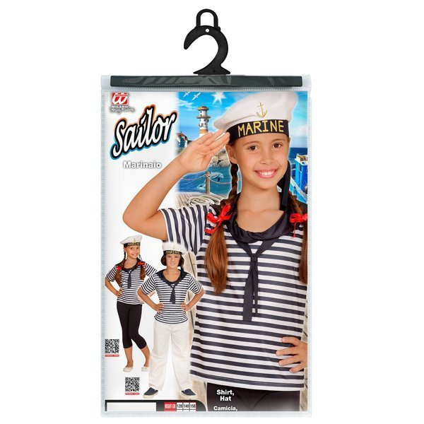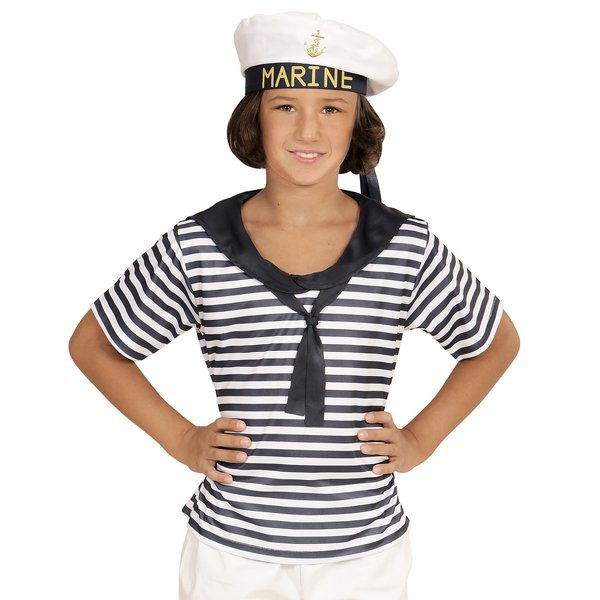 Strój Marynarz, kolor biało-czarny, zestaw zawiera: bluzkę i czapkę.